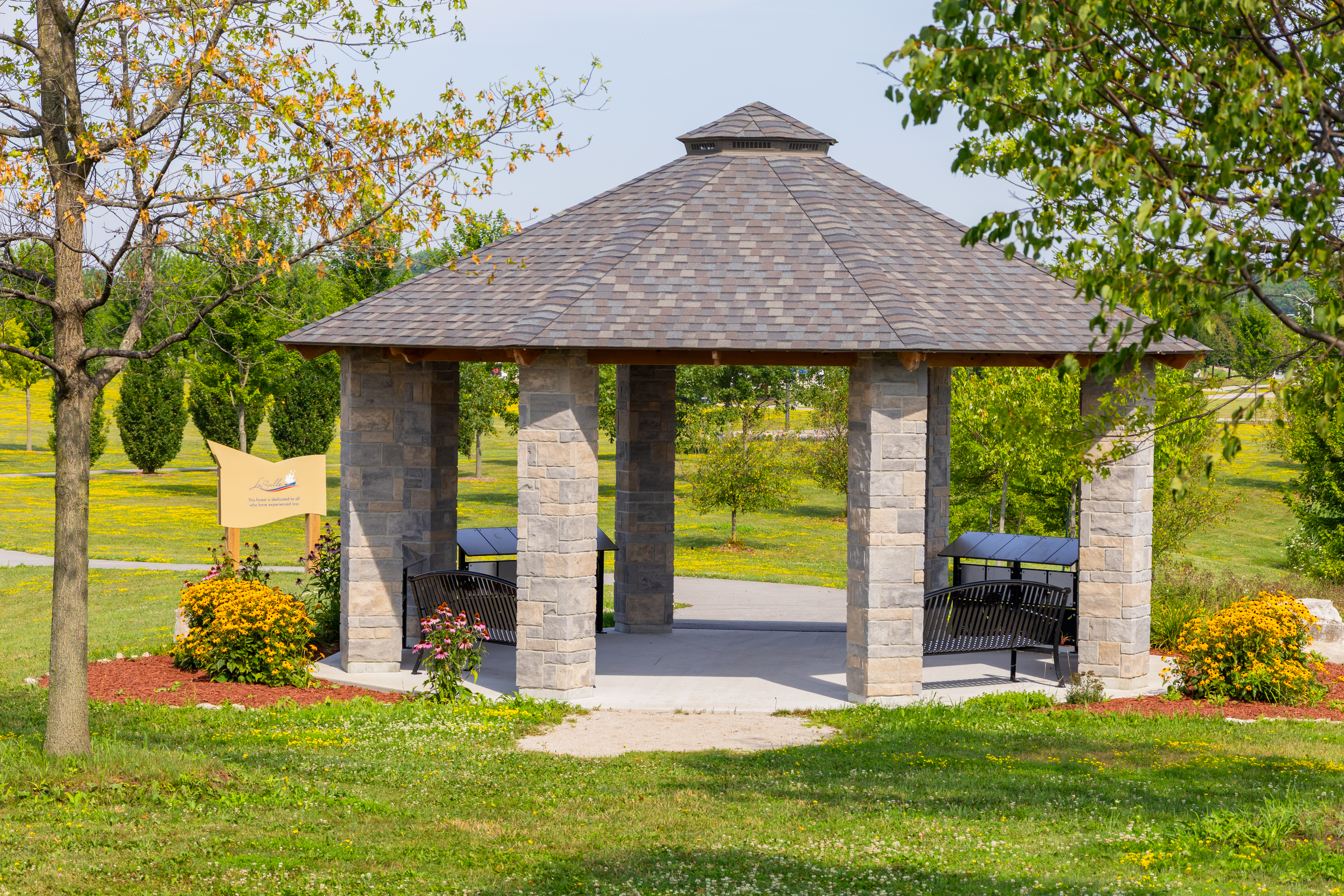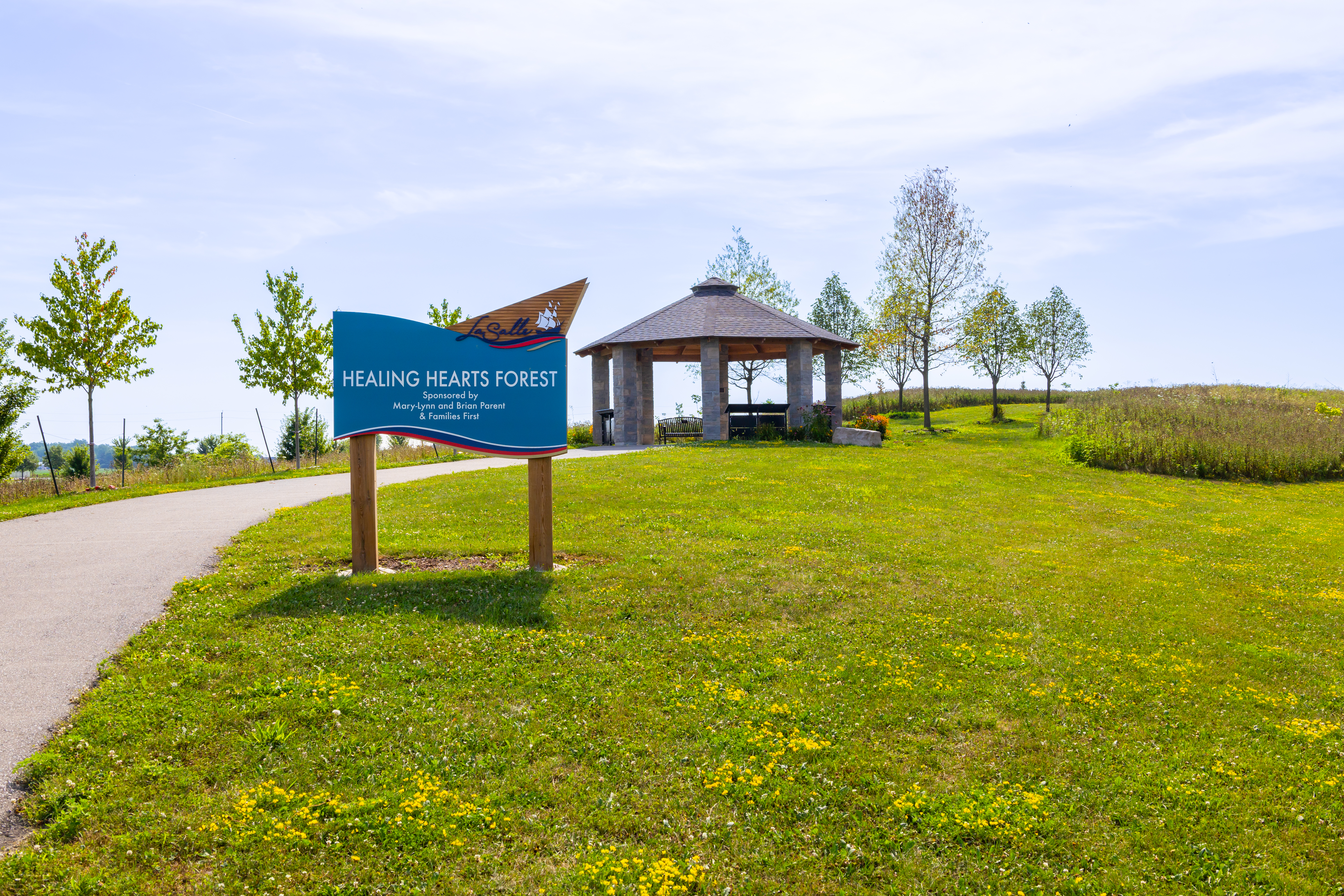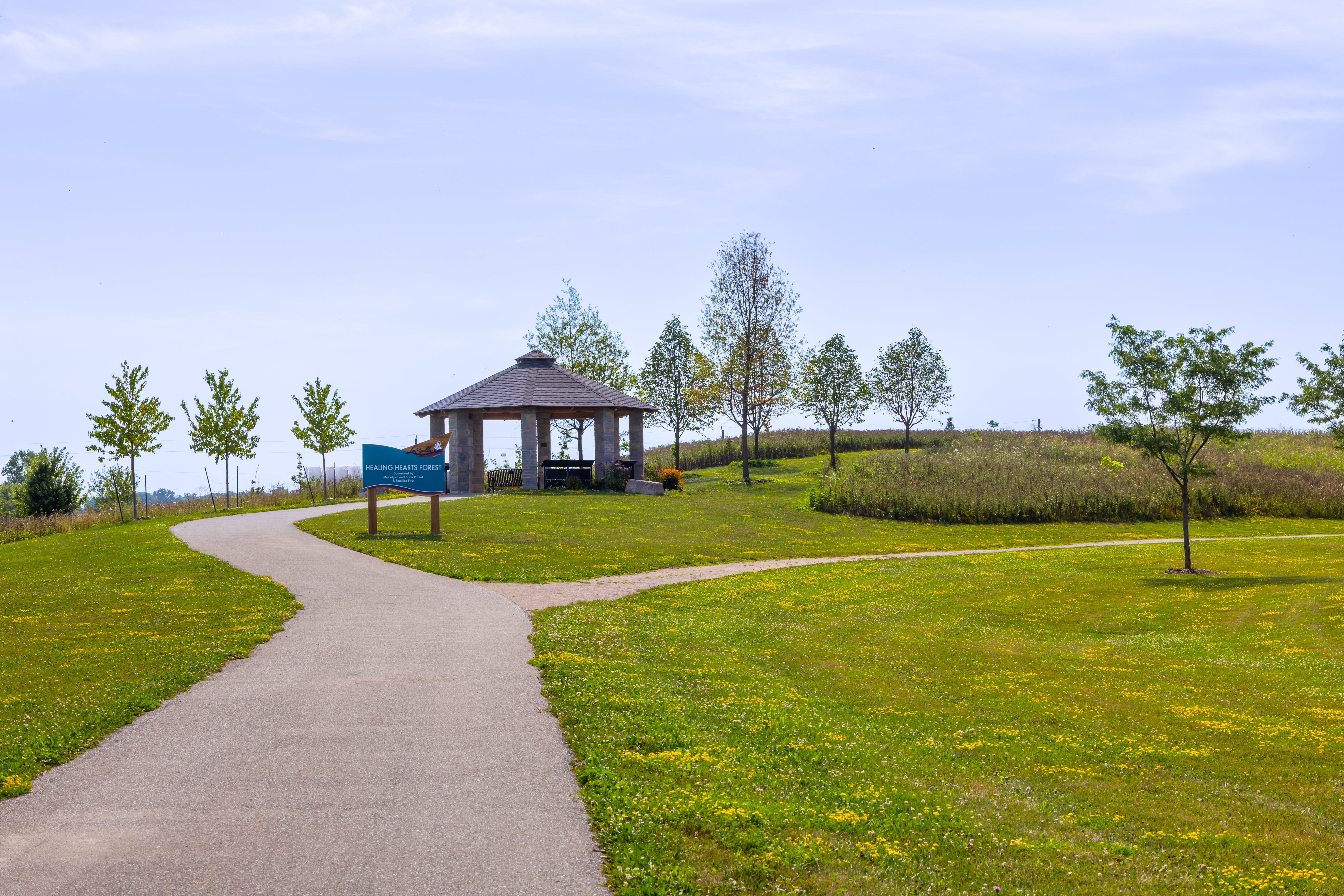 The Healing Hearts Forest, located south of the retention pond at the Vollmer Complex, is an outdoor space dedicated to all who have experienced loss. The setting includes 425 trees, a gazebo with benches, and a butterfly garden. The setting is surrounded by nature and is meant to bring focus and healing.