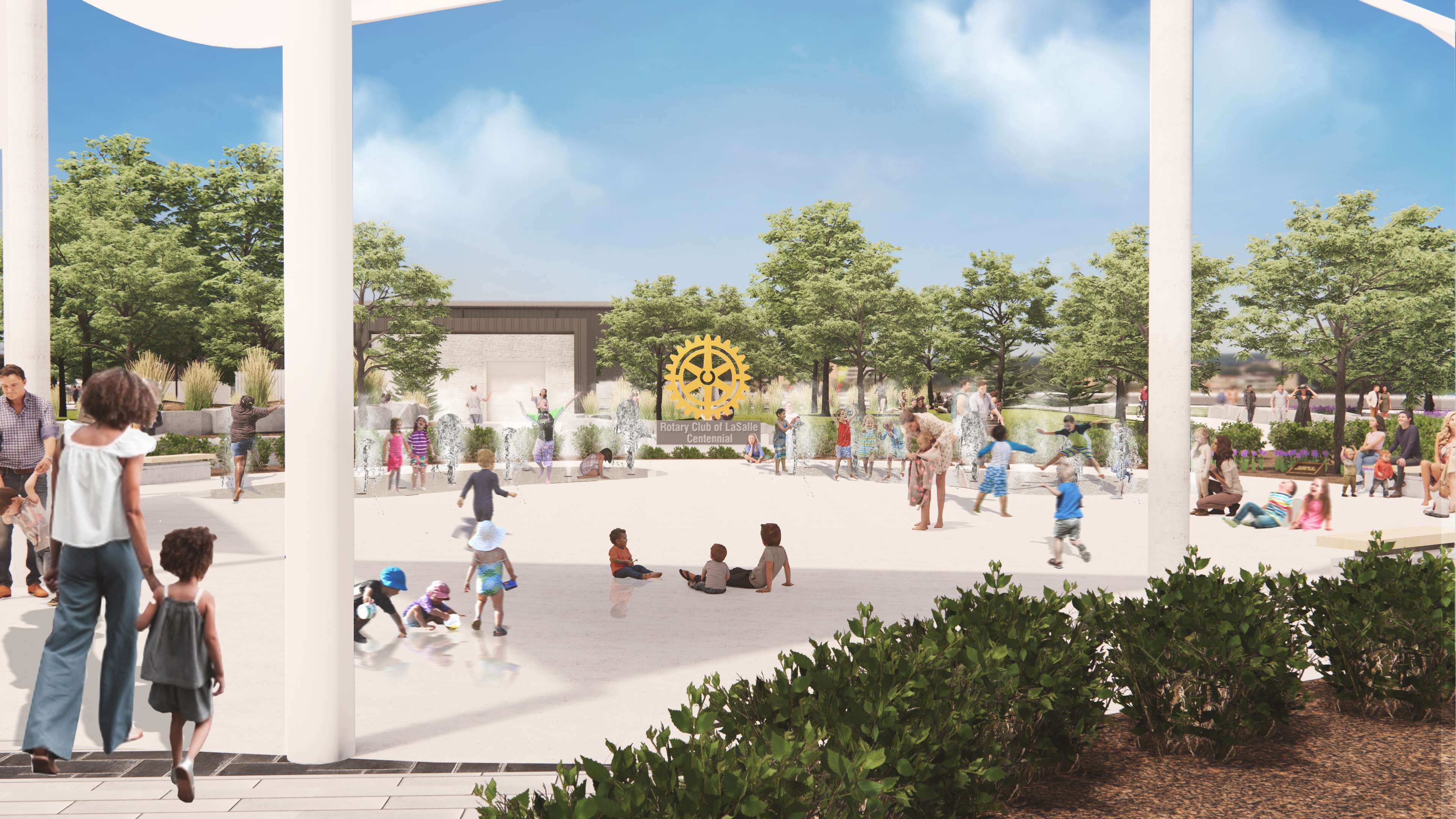 The Town of LaSalle is proud to announce a sponsorship from the Rotary Club of LaSalle – Centennial for a water feature that will be located near the ice trail providing this area with additional warm weather activities. The Rotary Club has pledged $132,000 in support of the project, and this will be used to enhance the design of the features. The water feature will have benches, ground-orientated water jets with areas to relax and enjoy water play, and for summertime cooling on hot and humid days.