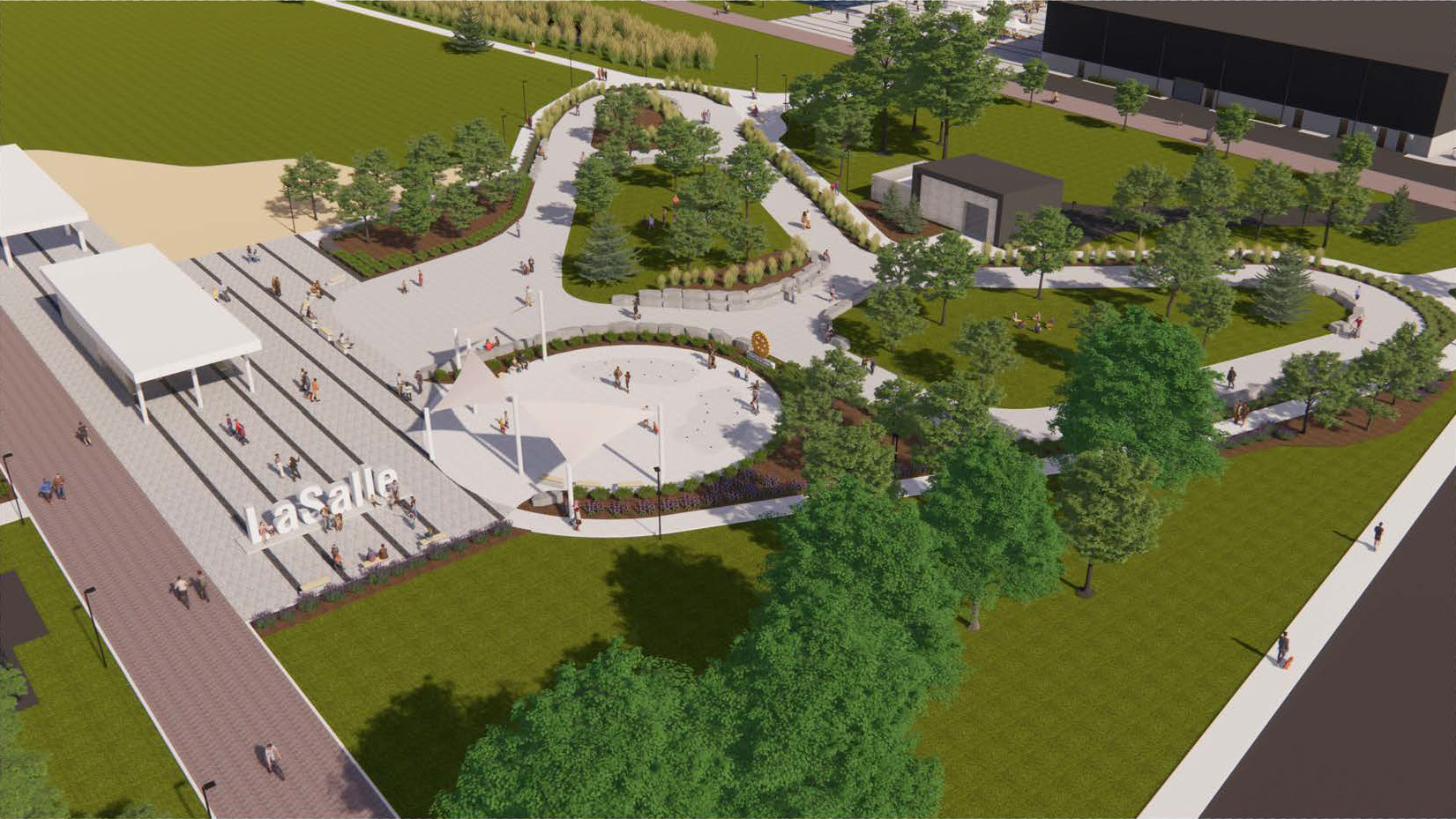 LaSalle currently holds numerous festivals year-round, like the Strawberry Festival. This project will make the event lawn more favourable for future events. It will relieve flooding concerns and offer appropriate inclement weather solutions, such as the paved hardscape of the event plaza, and use of the indoor event centre.